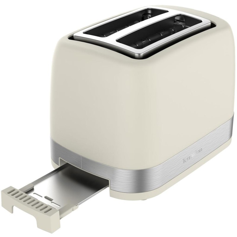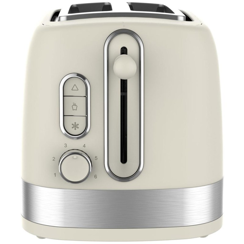 Upptäck vår gräddfärgade SUNRISE brödrost i en elegant design med detaljer i rostfritt stål, som kombinerar stil och funktionalitet för läckra morgnar
