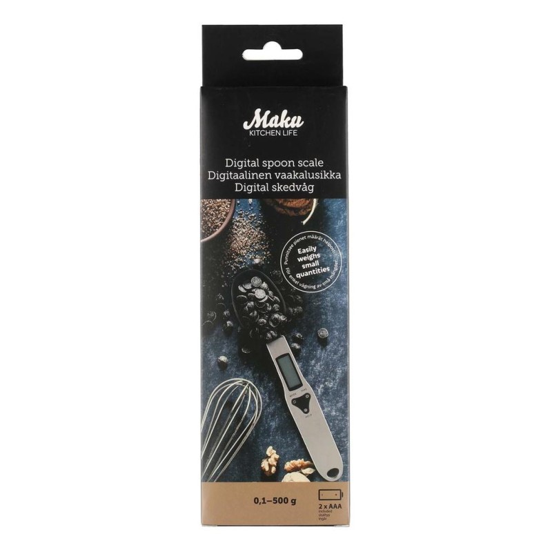 Måttskeden drivs av 2 x AAA 1,5V-batterier (ingår) och är utrustad med en automatisk avstängningsfunktion för att spara energi.