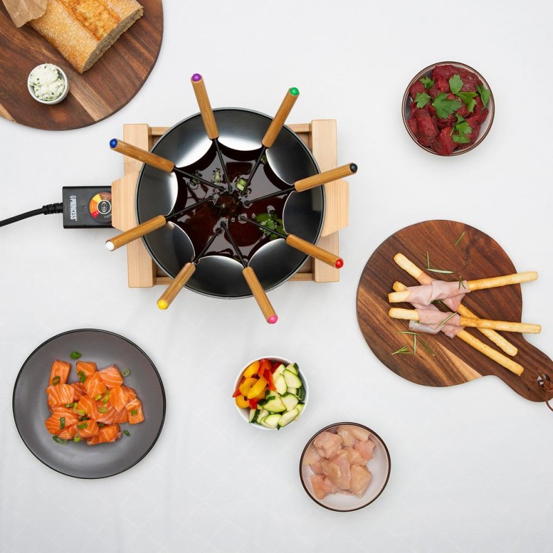 Komplett tillbehör: Levereras med 8 bambuförsedda gafflar för att enkelt doppa och njuta av dina favoritingredienser.