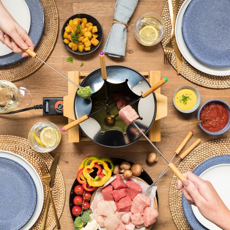Komplett tillbehör: Levereras med 8 bambuförsedda gafflar för att enkelt doppa och njuta av dina favoritingredienser.