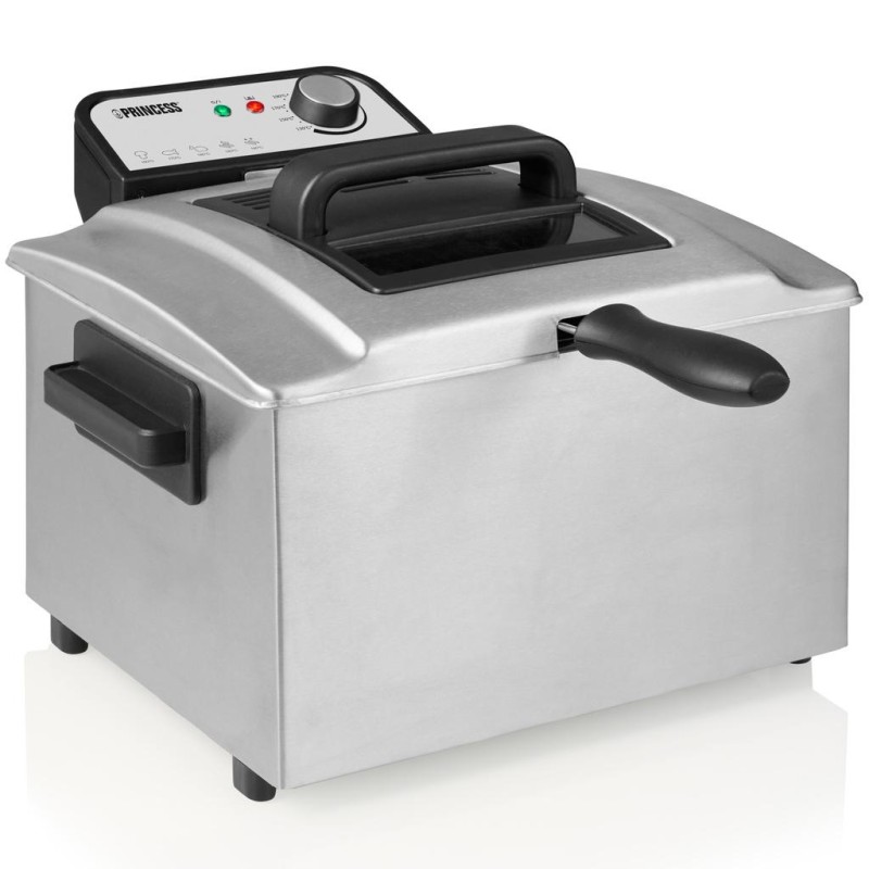 Upptäck Princess 184090 Fritös 5L, en kraftfull och stilren fritös i rostfritt stål som gör det enkelt att laga krispiga pommes frites, friterade snacks och läckra rätter hemma. Med en effekt på 3270 W och en 5-liters kapacitet är den perfekt för både vardagsbruk och festliga tillfällen.