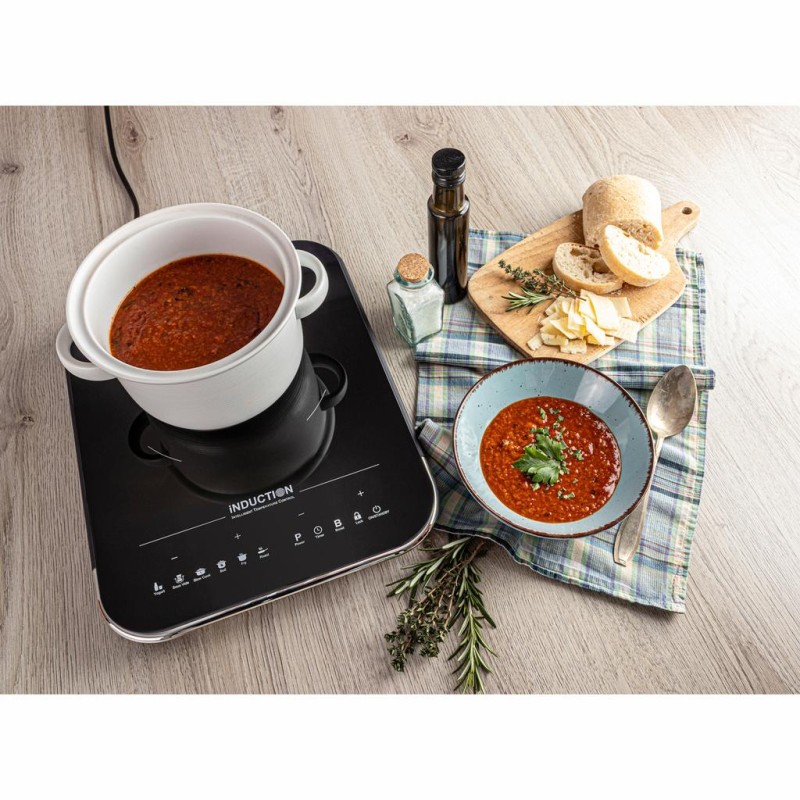 Matlagning har aldrig varit enklare än med denna innovativa induktionshäll från ROMMELSBACHER. Det superplatta höljet ger en ren och funktionell design. En sensor är integrerad i matlagningsytan som säkerställer högsta temperatur- noggrannhet vilket innebär ingen mer överkokning eller bränning!. De 6 direktvalsprogrammen gör det möjligt för även nybörjare att använda enheten effektivt. Tack vare de speciella förinställningarna kan moderna kökstrender som slow cooking, sousvide och yoghurttillverkning, realiseras på nolltid. Alla program kan justeras individuellt och förutom de förinställda programmen kan värmeplattan även styras individuellt med 10 effektnivåer.