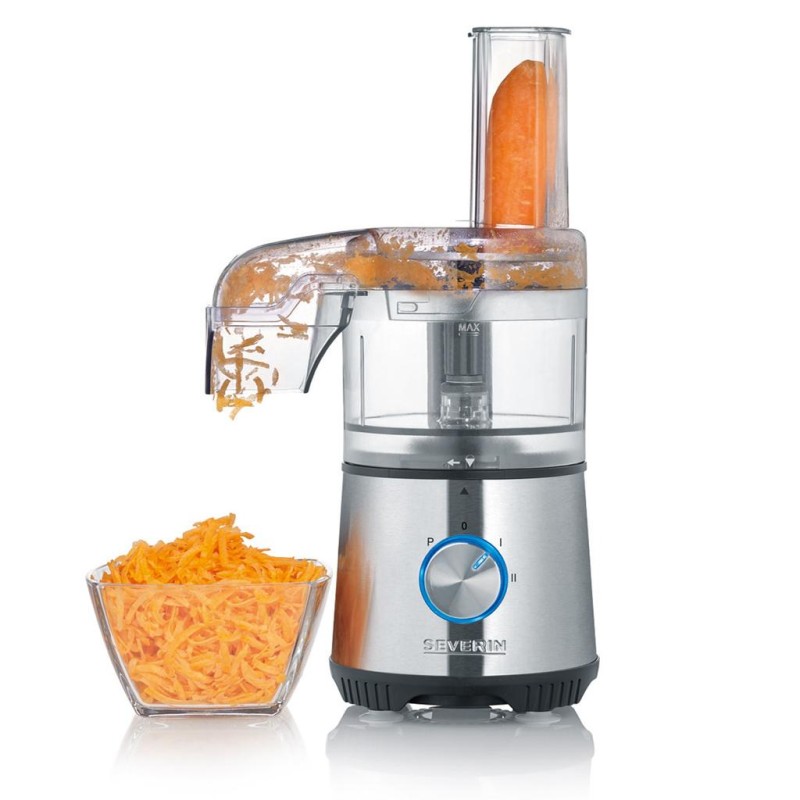 Lägg ner lök, nötter, örter, morötter eller gurka i behållaren och låt knivarna eller rivskivorna göra jobbet.