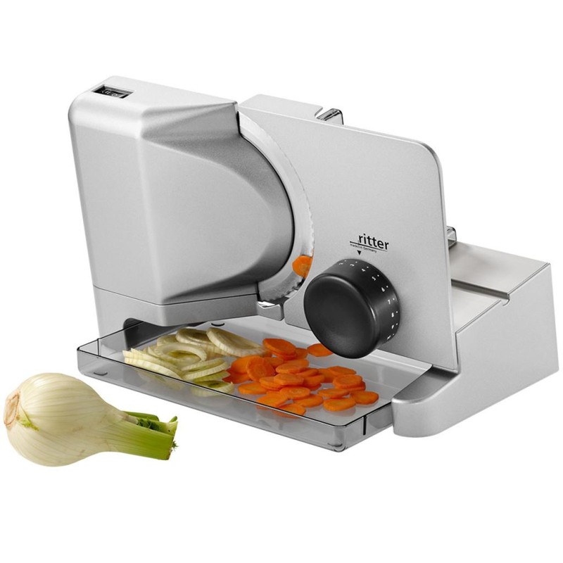 Skiva kött, grönsaker, bröd och annat med sluttande Arcus 3 slicer som har solid metallkropp