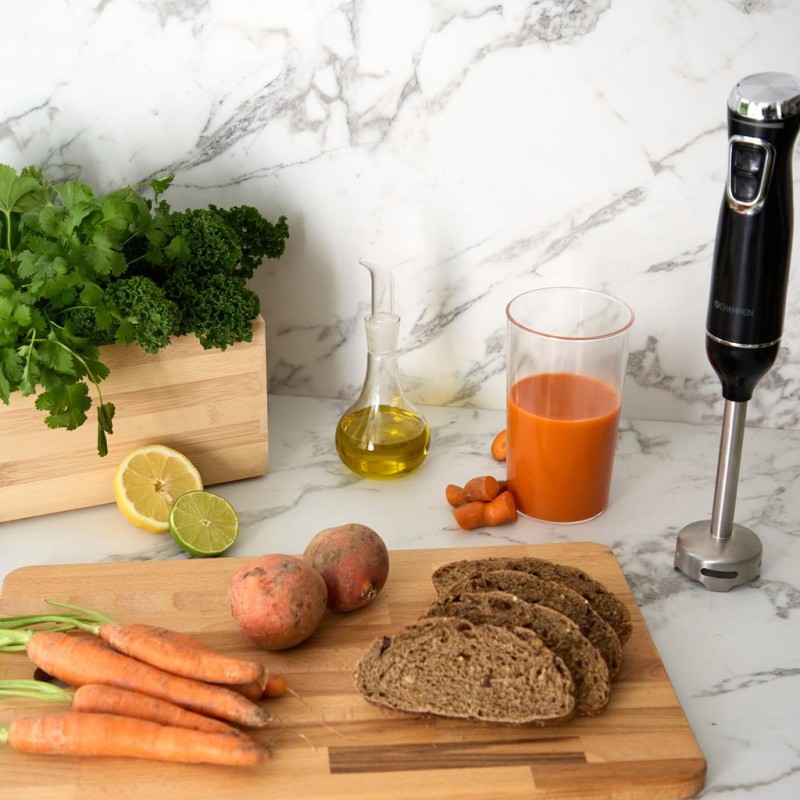 Champions Stavmixer STM300 är för dig som uppskattar en hjälpande hand i köket, oavsett om du behöver mixa, hacka eller mosa. Med slitstarka knivar i rostfritt stål, en kraftig motor på 600W samt steglöst hastighetsreglage blir den till en pålitlig assistent i köket. Champions Stavmixer har en ergonomisk design som gör att du kan använda den ofta. Mixa milkshakes, nyttiga smoothies och smakrika såser – bara fantasin sätter gränser.