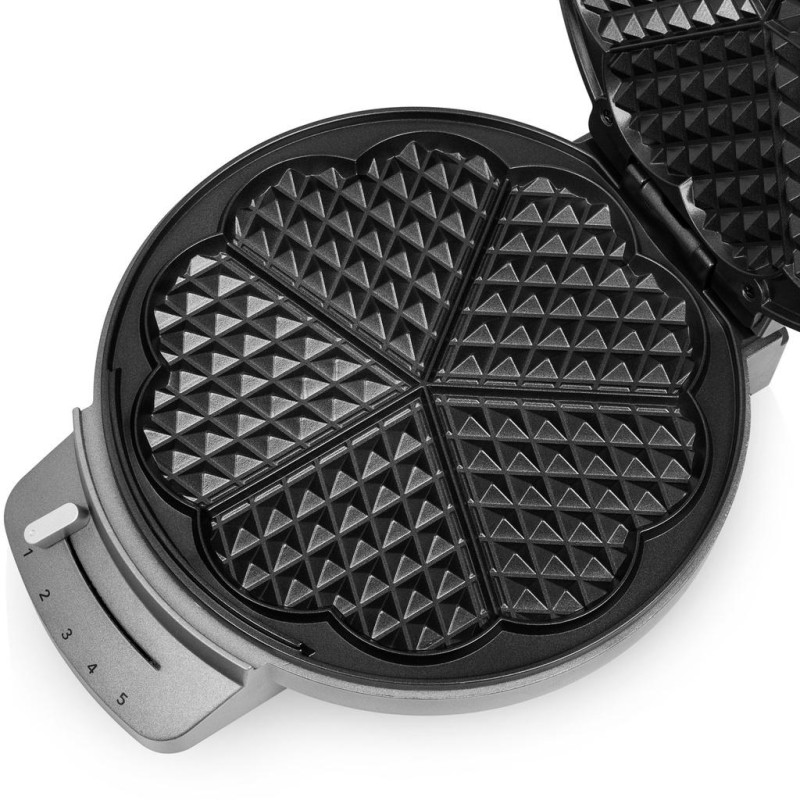 Med detta våffeljärn kan du göra de smakrikaste hjärtformade våfflorna! Med termostaten kan du enkelt ställa in graden av gräddning av våfflorna. Våffelplattorna är försedda med en nonstick-beläggning, vilket förenklar rengöring efter användning.