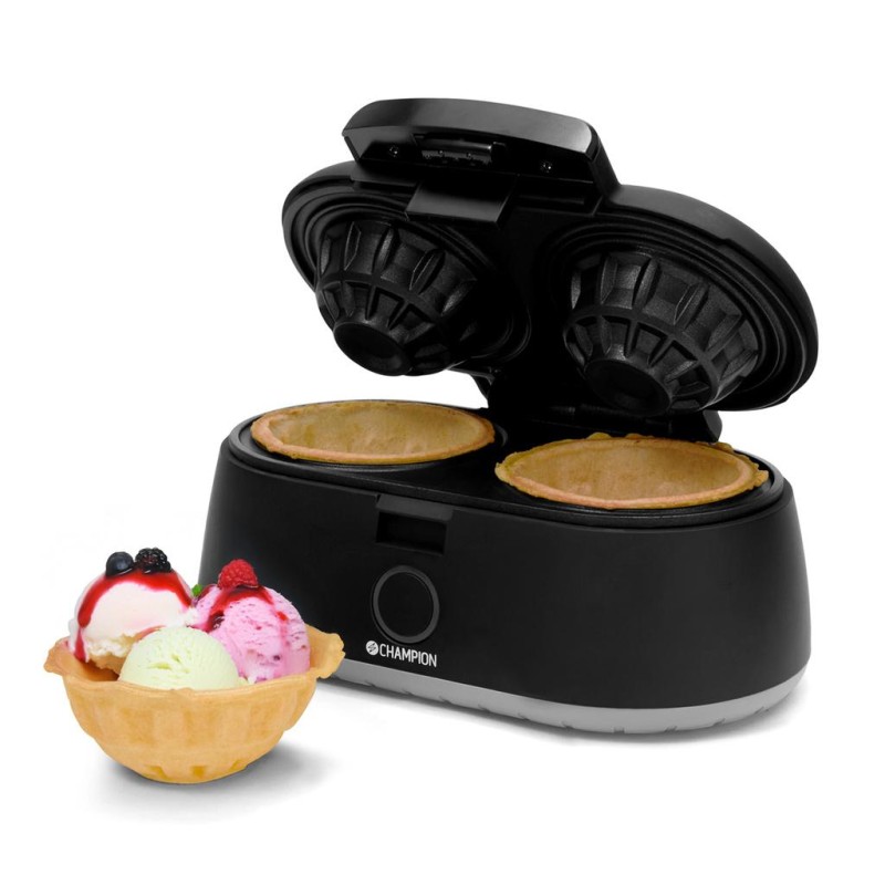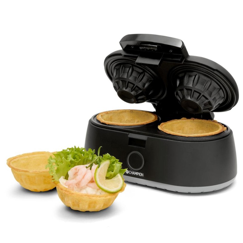 Imponera med en lyxig dessert bestående av nygräddade våffelskålar fyllda med godsaker. Med Champions Våffelskålsjärn gräddar du enkelt två goda våffelskålar åt gången med traditionell våffelsmet. Fyll med bär, frukt, glass, sylt och grädde eller överraska med en matigare variant fylld med ägg och bacon till frukost eller brunch.