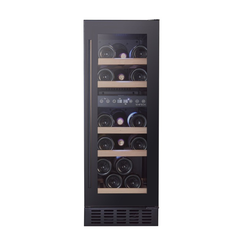 Temptech Classique CLX30DB vinkyl Vinkyl med två temperaturzoner (5-12°C, 12-20°C) och en kapacitet för upp till 16 standard bordeauxflaskor. Med två zoner kan du när som helst ha både vitt och rött vin klart att servera! Modern skandinavisk design, utrustad med en delikat front av 2-lagers glas med UV-skydd. I vinskåpet hittar du en snygg digital display och touchpanel som låter dig styra temperatur och LED-belysning. Organisera din vinsamling i utdragbara bokhyllor, utan tillsats av skadliga kemikalier. Avancerad kylteknik som säkerställer effektiv kylning och exakt temperatur, trots låga ljudnivåer. Vinkylen kommer också att hålla en optimal luftfuktighet på 50-70%. Integrering under bänk Utvecklad med ventilation i fronten för placering i nischer under bänk. Vinkylen levereras med ett avtagbart ventilationsgaller som gör det möjligt att placera vinkylen bakom kökssockeln för fullständig integration. Om vinkylen ska integreras måste ett separat ventilationsgaller monteras i kökssockeln. AntiVibe Vinkylen är utrustat med vibrationsdämpning runt kompressorn för att minimera vibrationer så att ditt vin alltid är säkert, oavsett lagringstid! Vibrationer från kompressorn kan orsaka skador med tiden och störa vinets utveckling. Classique CLX30DB AntiVibe – Vibrationsdämpare för skydd mot skadliga vibrationer Optimal luftfuktighet – Bibehåller optimal luftfuktighet 50-70 % Naturliga trähyllor – Trähyllor av bok, utan behandling med kemikalier Effektiv kylning – Jämn och exakt kylning med låga ljudnivåer UV-skydd – Skyddar vinet från skadlig UV-strålning Temptech Classique Serien har utvecklats för att uttrycka essensen av Temptechs engagemang för kvalitet och innovation. Classique-serien erbjuder en lättillgänglig ingång till världen av premiumvinlagring. Gjord för vinentusiaster på alla nivåer Utbudet är utformat med samma känsla för detaljer och hängivenhet för kvalitet som definierar alla Temptech-produkter. Oavsett om du precis har börjat din samling eller vill utöka den, erbjuder Classique-serien en rad modeller för att passa dina utrymmesbehov och förvaringskrav. Från den kompakta CLX15SB för 6 vinflaskor till de större fristående modellerna för över 160 flaskor, det finns ett Classique-skåp som passar din samling och budget. Vi tror att alla förtjänar tillgång till förstklassiga vinlagringslösningar. Därför kommer varje Classique-skåp att säkerställa att ditt vin förvaras under optimala förhållanden och bevarar vinets kvalitet. Utökad garanti – 5 år Classique-serien fortsätter vårt engagemang för kvalitet och kundnöjdhet. Med en utökad garanti på fem år kan du köpa med tillförsikt, i vetskap om att din investering är skyddad.
