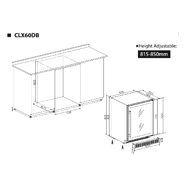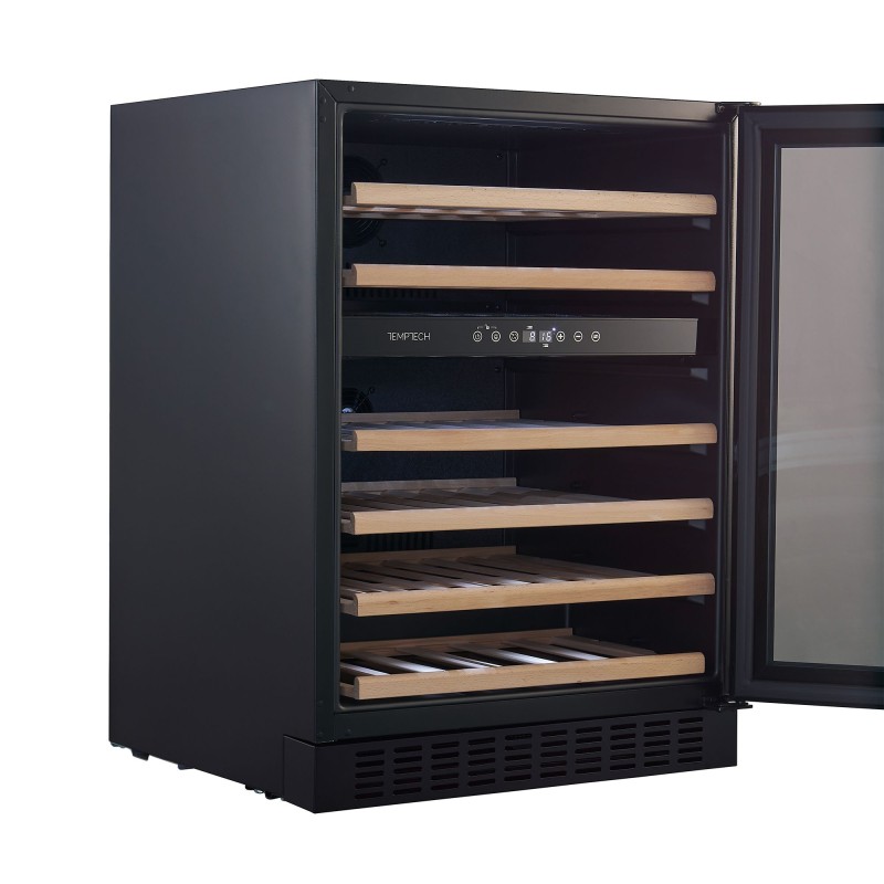 Utvecklad med ventilation i fronten för placering i nischer under bänk. Vinkylen levereras med ett avtagbart ventilationsgaller som gör det möjligt att placera vinkylen bakom kökssockeln för fullständig integration. Om vinkylen ska integreras måste ett separat ventilationsgaller monteras i kökssockeln.