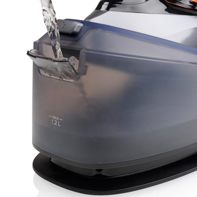 Upplev vår 2200 W ångstation med upp till 6,5 bars ångtryck, som genererar jämn och kraftfull ånga.