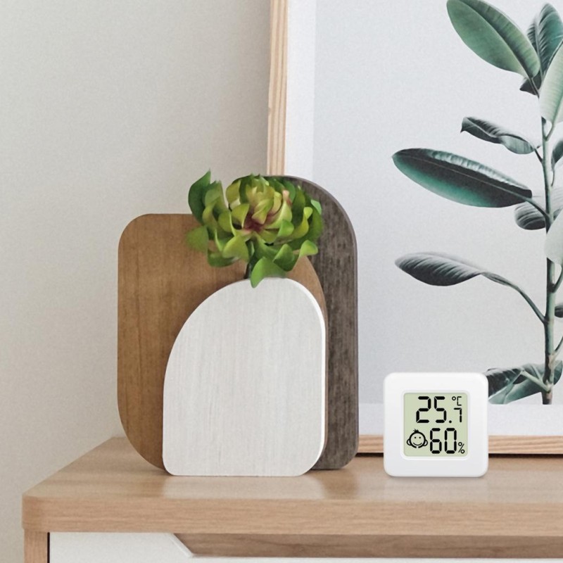 Övervaka temperatur och luftfuktighet i vinkällaren, matkällare, serverrummet, växthuset eller hemmet. Kompakt storlek, väggmonterbar eller uppställd med stativ. Lätt att visa med emoji som komfortzonindikator, snabbt identifiera inomhusluftkvaliteten.