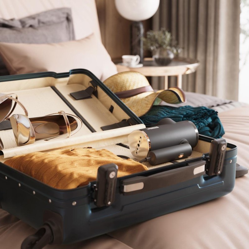 Denna kraftfulla 2-i-1-klädångare med luddborttagare gör dina kläder skrynkel- och luddfria. Den lätta, fällbara konstruktionen gör att den tar liten plats när den förvaras och att den passar perfekt för resan.