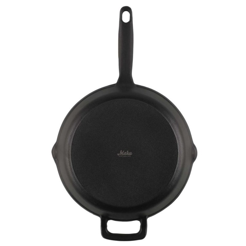 Den här kraftiga stekpannan i emaljerat gjutjärn kombinerar klassisk design med modern funktionalitet. Den matta emaljytan ger ett elegant uttryck samtidigt som den skyddar gjutjärnet och gör pannan lättare att underhålla. Utrustad med två rejäla handtag för smidig hantering och en praktisk hällpip för enkel upphällning av sås eller stekfett.