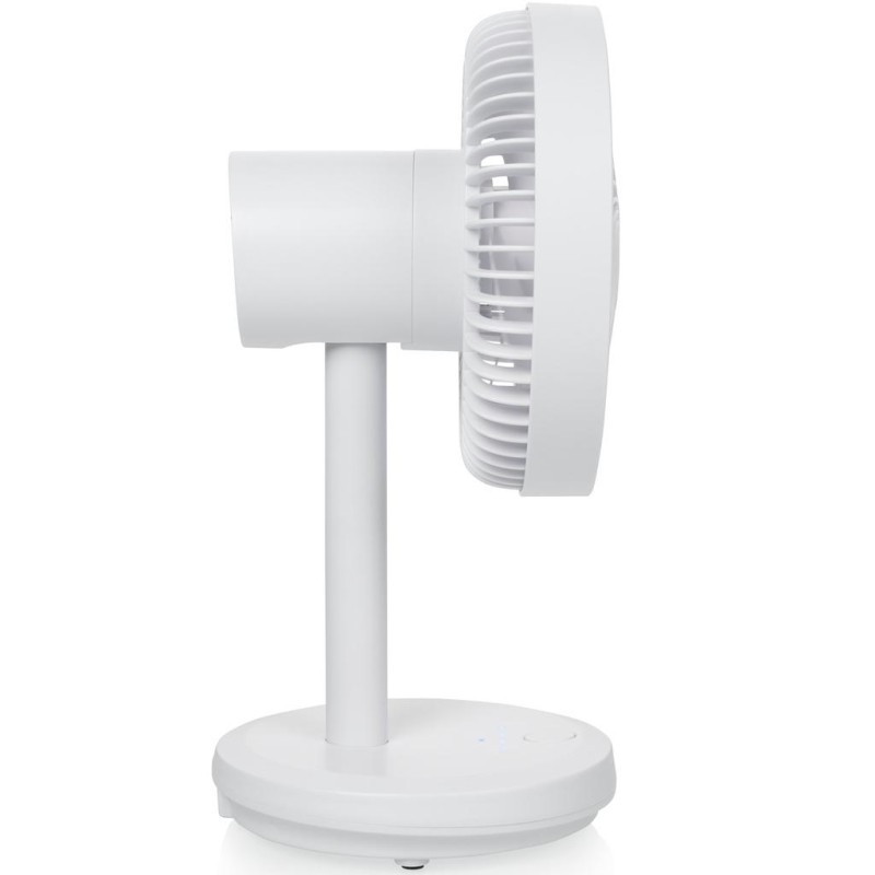 Tack vare sin kompakta storlek kan du placera fläkten var som helst och till och med ta med den när du arbetar utanför kontoret. Du behöver inget vägguttag, bara anslut USB-kabeln i USB-porten på din dator eller bil för att ladda fläkten. Det tar 4,5 timmar att ladda fläkten helt, vilket gör att du kan använda den i 9 timmar i sträck. Detta innebär att du till och med kan ta med fläkten till parken, stranden eller din trädgård.