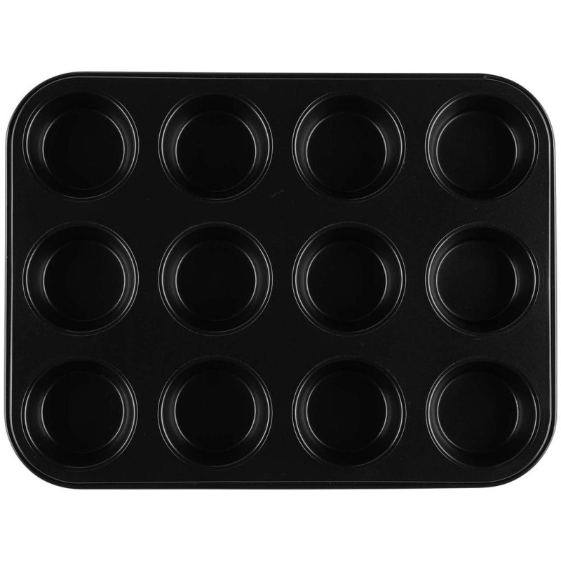 Plåten rymmer 12 muffins med en koppdiameter på 6,5 cm och volym på 85 ml per form. Tillverkad i 0,4 mm tjockt material med non stick-beläggning som gör den enkel att använda och rengöra.