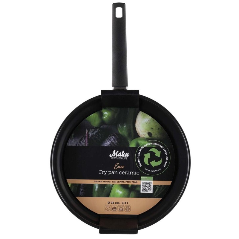 Ease är en hållbar stekpanna i stål med en smart flerskiktsbotten som ger snabb och jämn värmespridning samt fungerar med alla spihällar. Den keramiska beläggningen ger en naturligt non-stick yta som gör matlagningen smidig och rengöringen enkel.