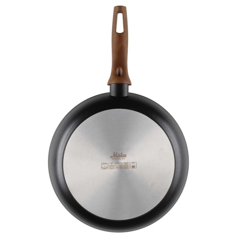 Passar alla typer av spishällar och tål ugnsvärme upp till 150 °C. Den keramiska ytan gör rengöringen enkel och pannan kan diskas i maskin, även om handdisk rekommenderas för att bevara livslängden.