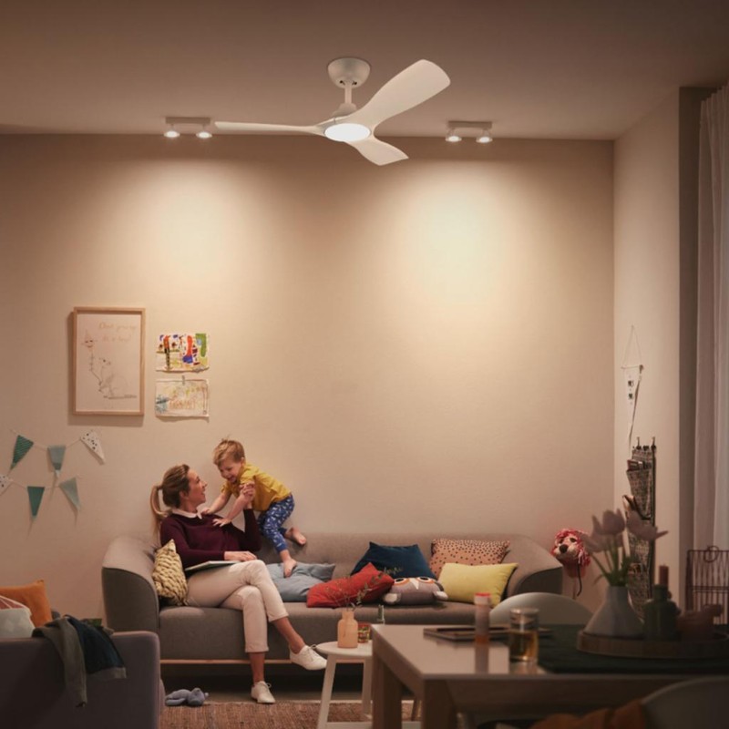Välj dimbart vitt ljus som går från kallt till varmt medan du njuter av takfläktens behagliga bris