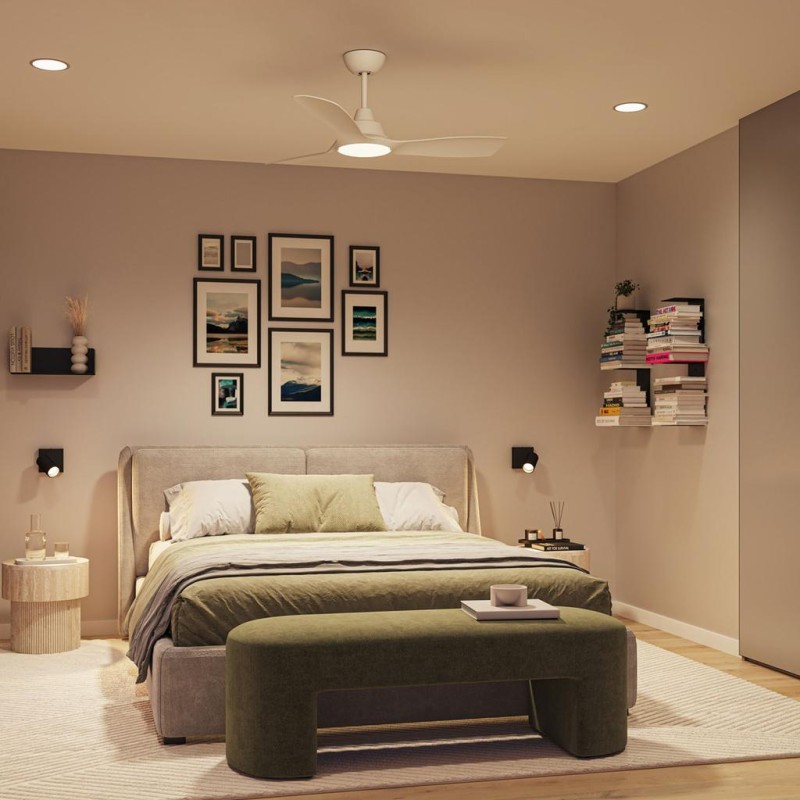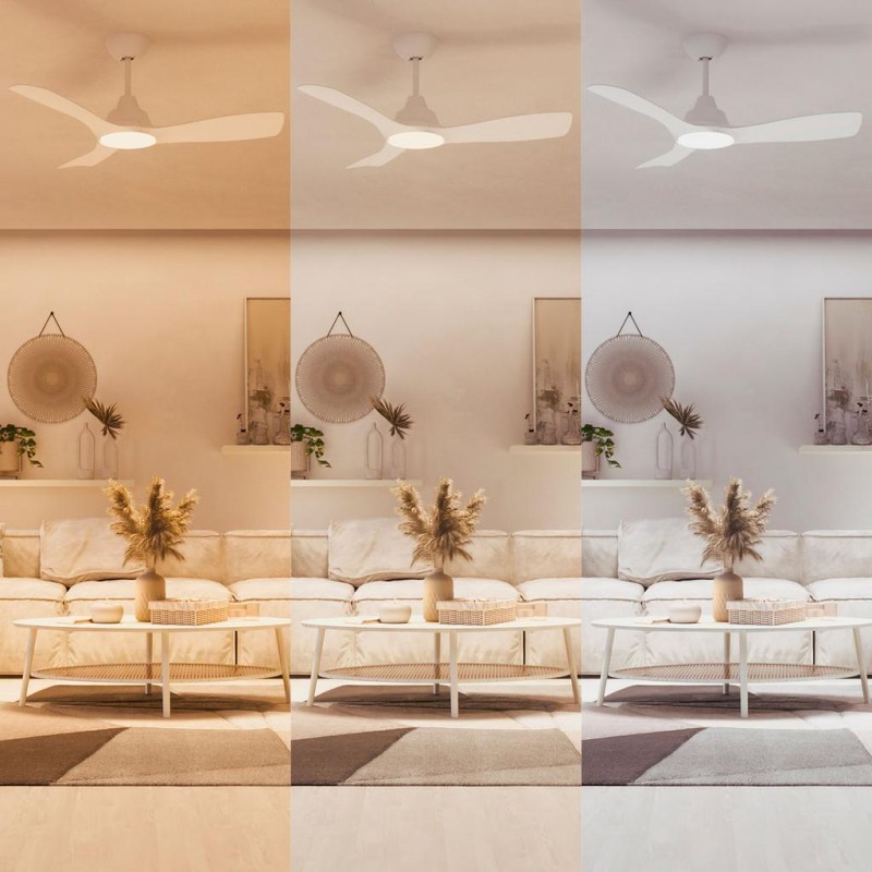Välj dimbart vitt ljus som går från kallt till varmt medan du njuter av takfläktens behagliga bris