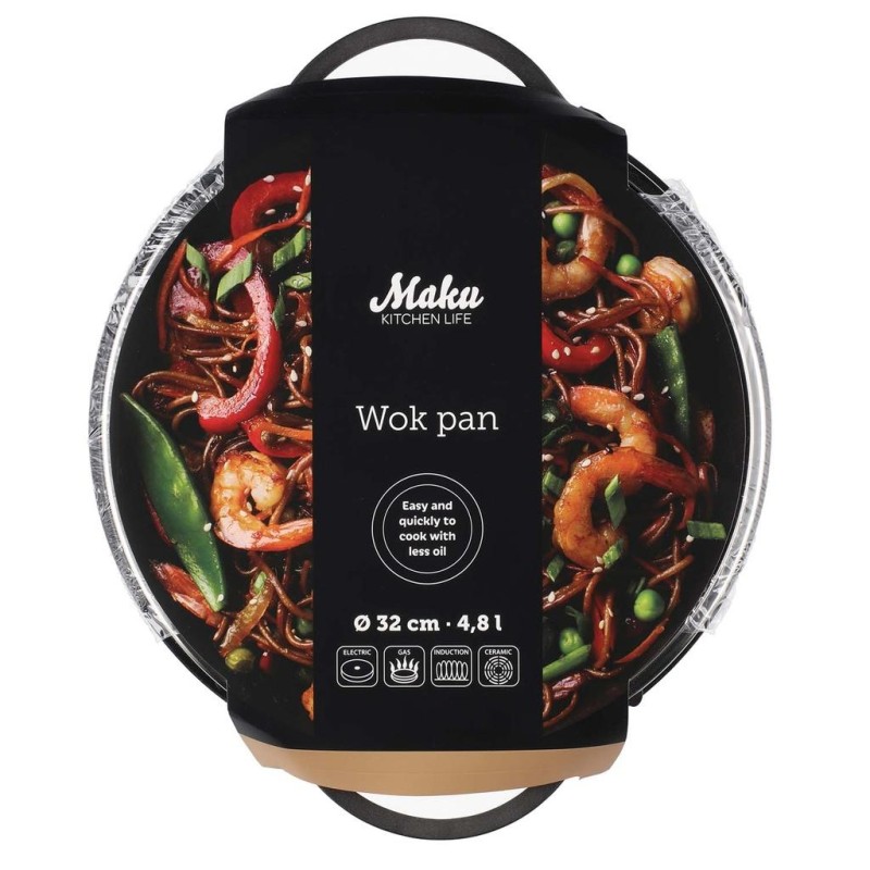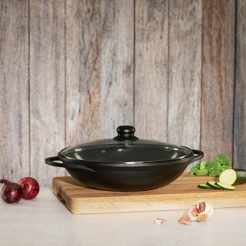 Den keramiska beläggningen gör woken lätt att rengöra och passar utmärkt för daglig användning. Med två praktiska handtag är den enkel att hantera, även när den är full.