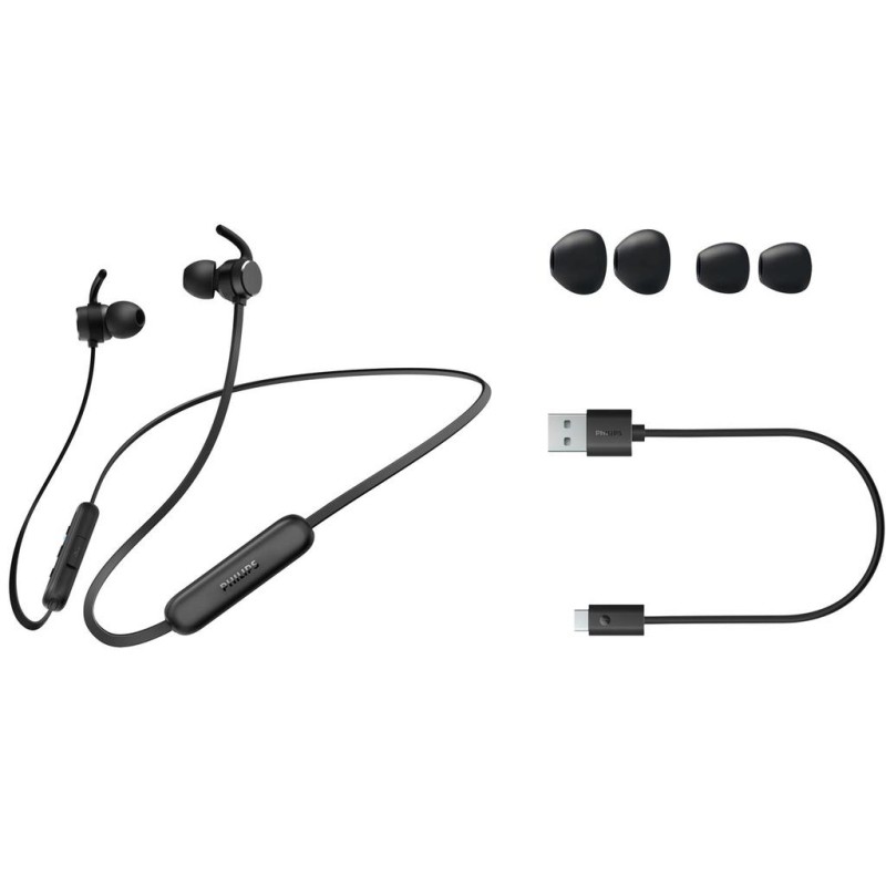 - Ha musiken nära till hands. De här trådlösa stänk- och svettåliga hörlurarna ger dig fantastiskt ljud, en bekväm passform i öronen och upp till 8 timmars speltid. När du behöver mer får du 1 timmes extra speltid med bara 15 minuters laddning.