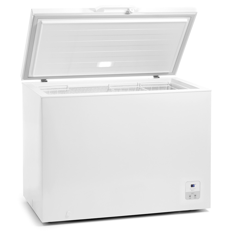 Frysbox, 297 liter, Energi E, Display, LED lys, Dual Function, Super freeze, hjul, handtag med lås, -15 grader, H 84,7 / B 111,4 / D 63, vit