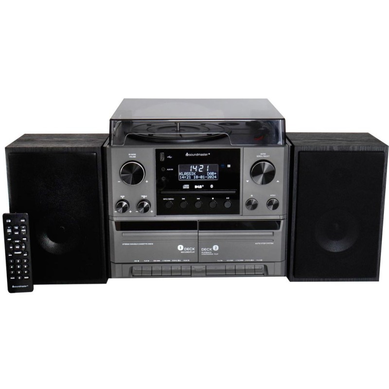 Klassisk stereo med skivspelare, CD, Radio, dubbel-kassett och högtalare
