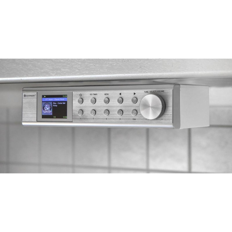 Praktiskt radio för upphängning under skåp, perfekt i köket, garaget eller liknande platser