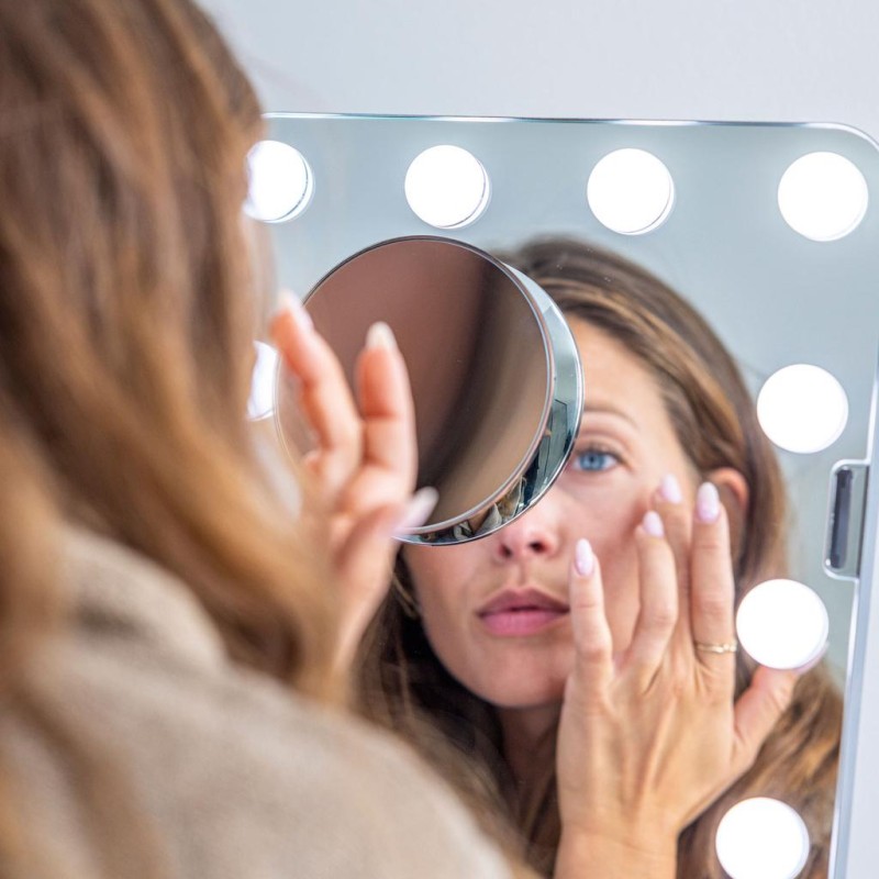 JUSTERBAR VINKELSPEGEL: Justera enkelt vinkeln på spegeln för att hitta din perfekta synvinkel för en smidig makeupapplikation.