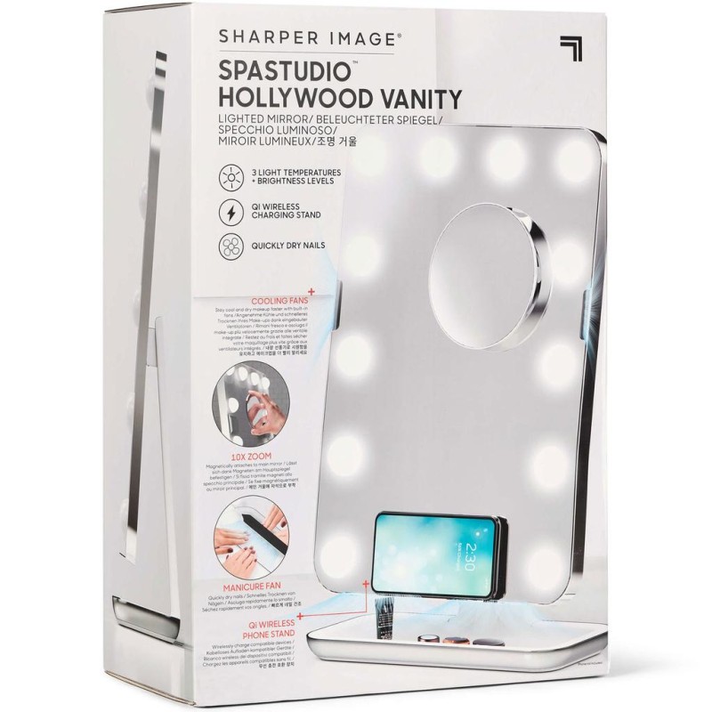 Optimera din skönhetsrutin med Sharper Image® SpaStudio™ Hollywood Vanity, som har en anpassningsbar vinkelspegel för den perfekta synvinkeln vid makeupapplikation