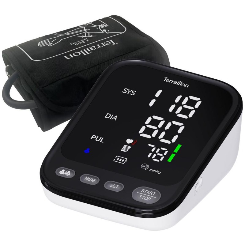 TB251 blodtrycksmätare för arm är utformad för att ge tillförlitlig och enkel blodtrycksmätning. Med hjälp av den oscillometriska metoden mäter den noggrant systoliskt och diastoliskt tryck samt hjärtfrekvens. LED-skärmen gör det enkelt att läsa av resultaten och den justerbara manschetten (22-42 cm) passar många olika användare. Med dubbla strömförsörjningsalternativ (AAA-batterier eller USB-C) kan den anpassas till dagliga behov, oavsett om du är hemma eller på språng. Det avancerade minnessystemet registrerar mätningar för två separata användare, vilket gör långtidsövervakning enkel.