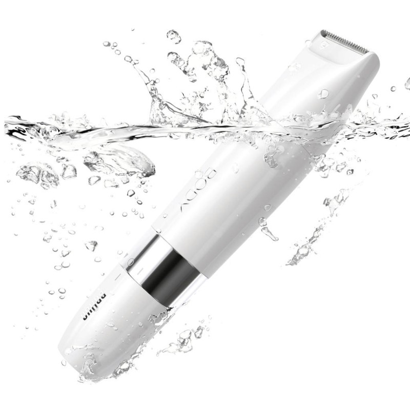 Hårborttagning med precision för bikini, armhålor, bröst, snabb & enkel, wet & dry, med trimmerkam, perfekt när du är på språng. I vit färg.