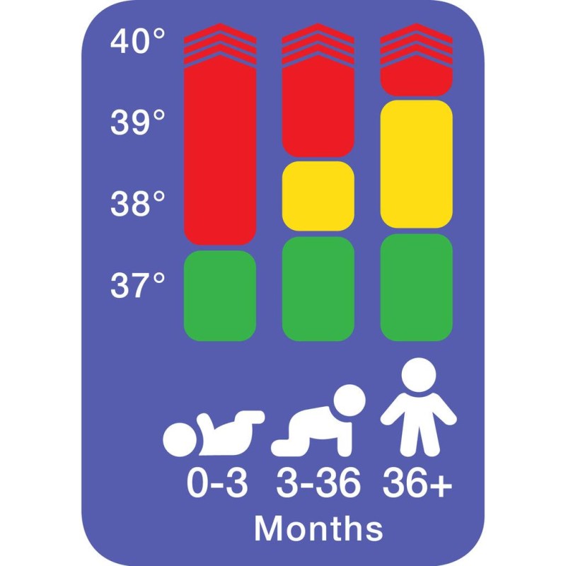 En åldersjusterbar febervägledning som gör att du slipper gissa hur du ska tolka ditt barns temperatur.