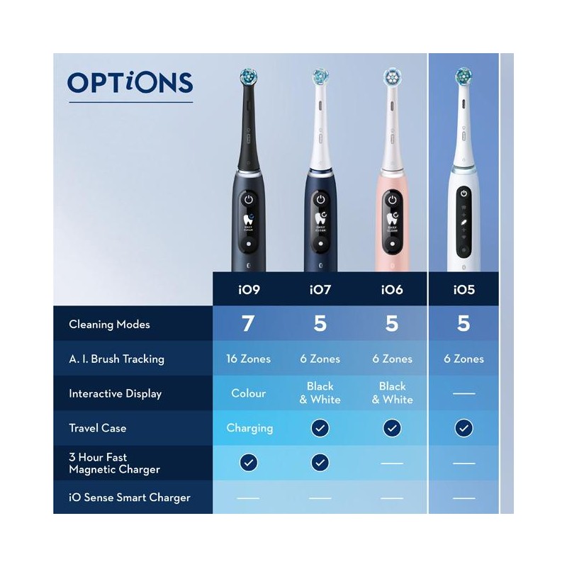 - Oral-B:s BÄSTA RENGÖRING NÅGONSIN med REVOLUTIONERANDE iO-TEKNIK för en professionellt ren känsla och skonsam borstningsupplevelse