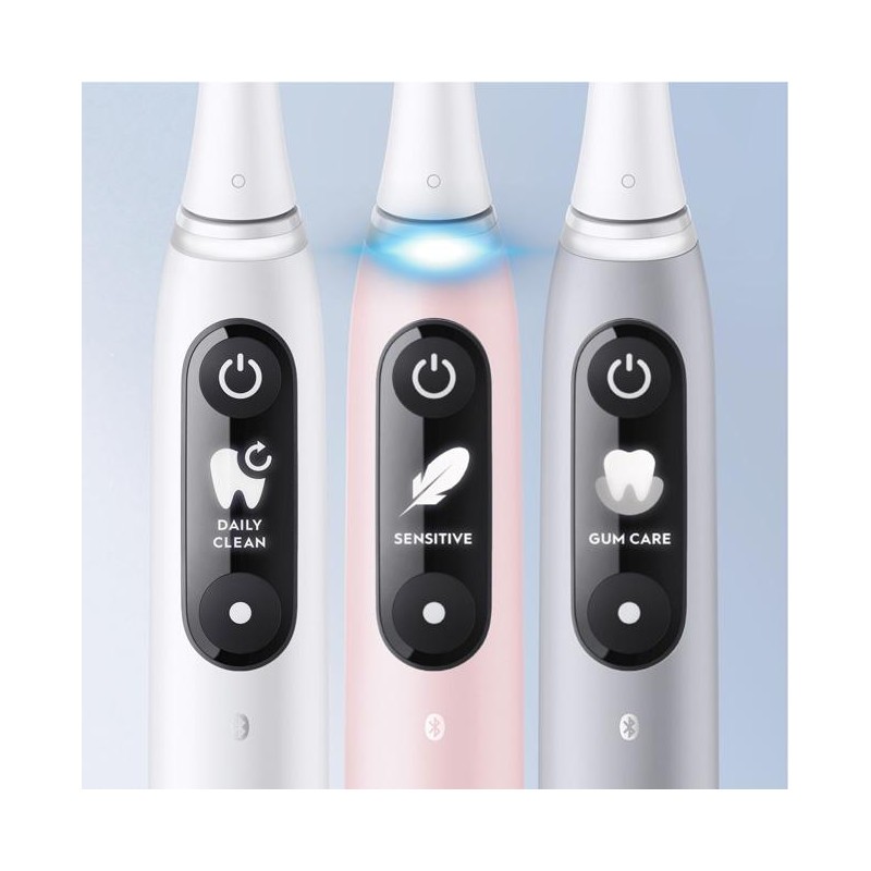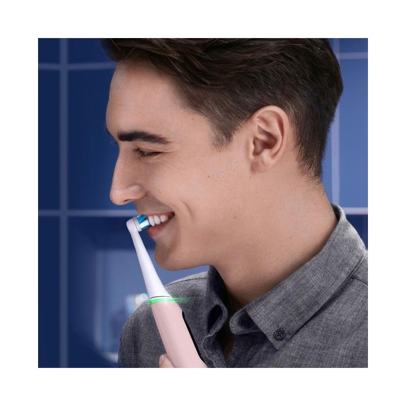 Smarttrycksensorn förhindrar att du antingen borstar för hårt eller för mjukt för att skydda ditt tandkött och få den bästa rengöringen. Borstningsigenkänning genom artificiell intelligens identifierar ditt sätt att borsta tänderna och guidar dig till bättre resultat varje dag. Ersätt dina Oral-B iO Series-refillborsthuvuden var tredje månad för bästa resultat.