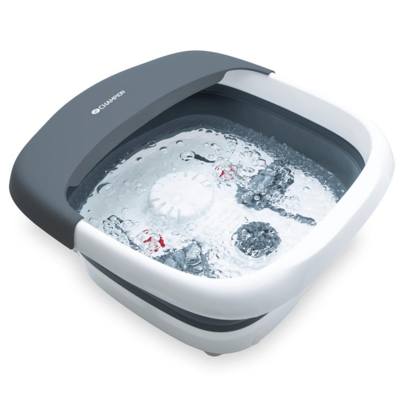 Med Champion fotbad tar du hand om dina fötter – ge dem ett avslappnande spabad och njut av den uppiggande effekten. Detta fotbad har utrustats med vibration, ett rogivande infrarött ljus, mjukgörande bubblor och en behaglig värmande effekt. Med en rymlig storlek på 5L och smart vikbar konstruktion är den enkel att använda och kommer bli en favorit i läshörnan eller framför Tv: n.