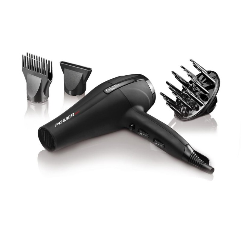 Det innovativa joniska systemet neutraliserar frizz, lämnar håret mjukt, silkeslent och glänsande under en lång tid. Den har 6 temperaturer, 2 hastigheter, cool shot, soft touch halkskydds grepp, löstagbar filter för bättre rengöring och 1,8 meter lång sladd. Två anriknings munstycken och en diffusor ingår.