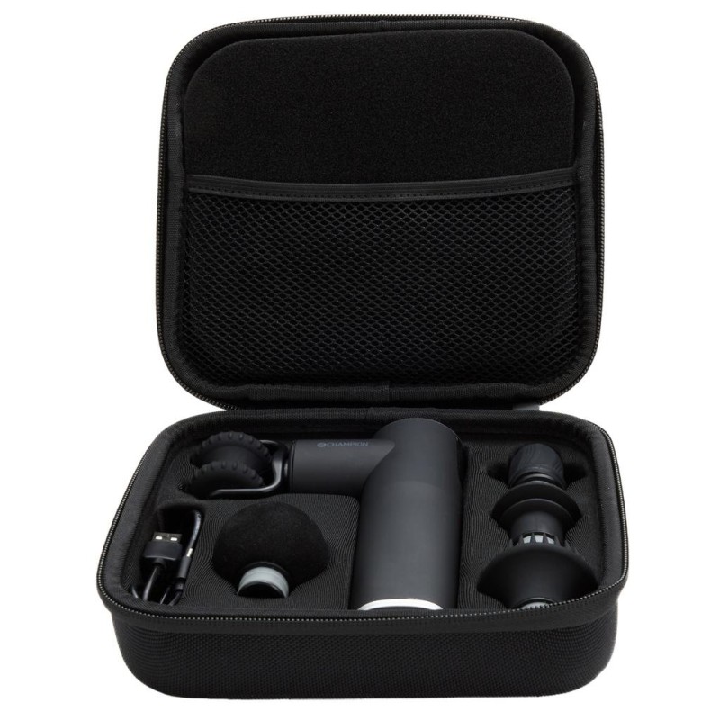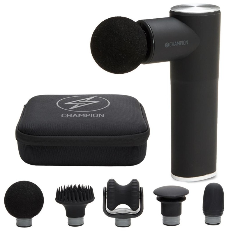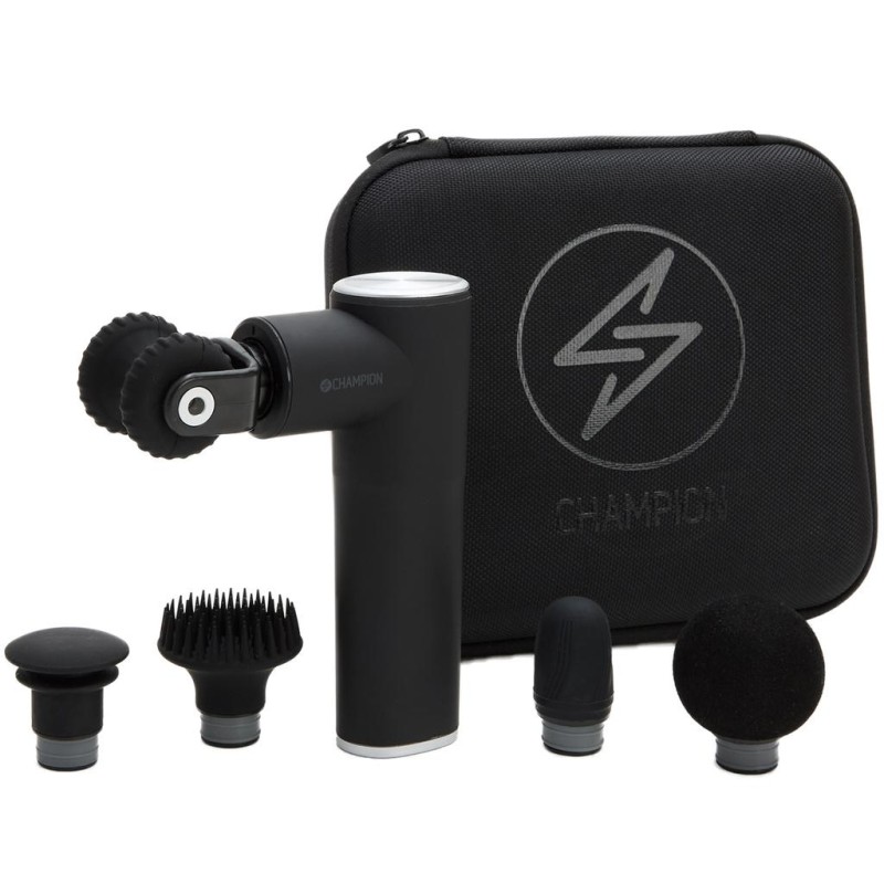 Med Champions Massagepistol Compact Power kan du massera och mjuka upp stela muskler innan eller efter träningen, eller efter en lång dag av stillasittande på kontoret. Använd för att värma upp muskler, massera bindväv eller främja blodcirkulationen. Med 4 hastigheter och 5 olika massagehuvud anpassar du din massagepistol efter dina behov. Det kraftfulla batteriet ger en användningstid på ca. 4 timmar. Handtaget har en oval och greppvänlig yta för bättre komfort i handen.
