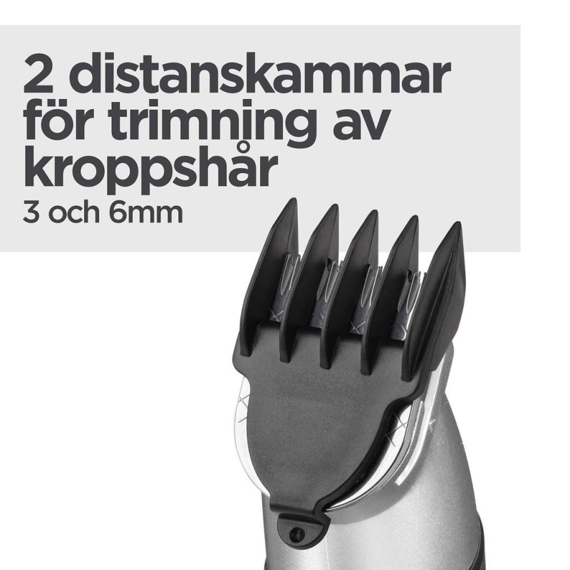 - 2 distanskammar för trimning av kroppsbehåring (3 och 6 mm)