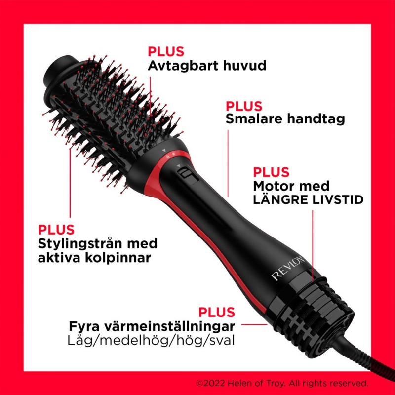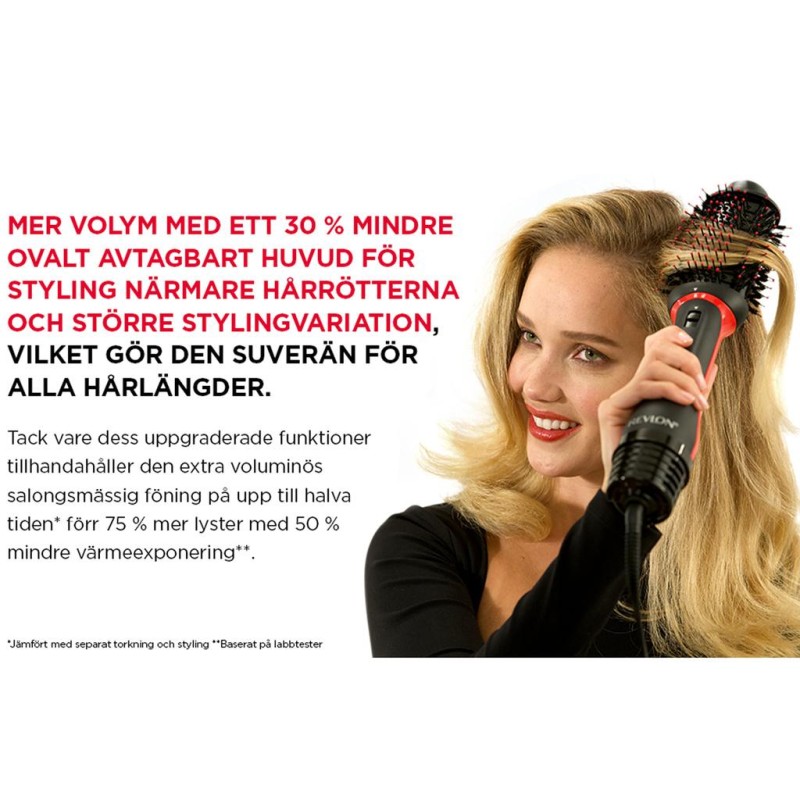 - MER volym med sitt 30% mindre ovala avtagbara huvud för styling närmare rötterna och mer mångsidighet, vilket gör det perfekt för alla hårlängder.