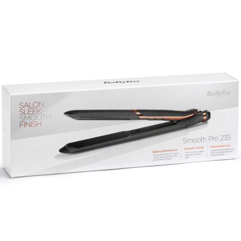 BaByliss Smooth Pro 235 Straightener ger en jämn, slät finish med hjälp av lättglidande nanokeramiska plattor och joniserande teknik