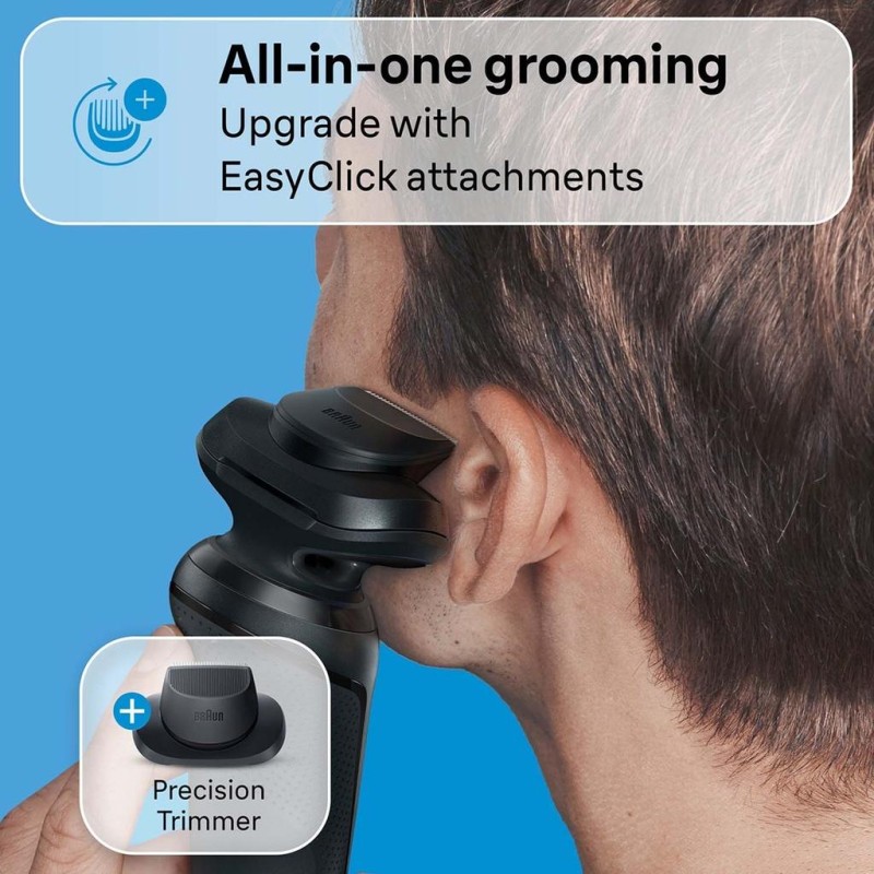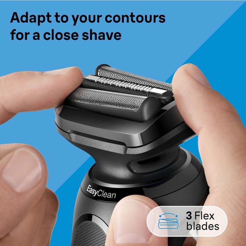 - 3 flexibla blad: rakapparaten anpassar sig efter dina unika ansiktskonturer för en nära rakning samtidigt som den skyddar din hud