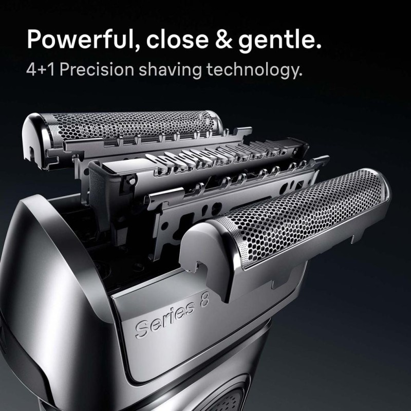 - Kraftfull & exakt i varje drag: Brauns Series 8 premium elektriska rakapparat med synkroniserad 4+1-teknologi för en kraftfull, nära och skonsam rakning