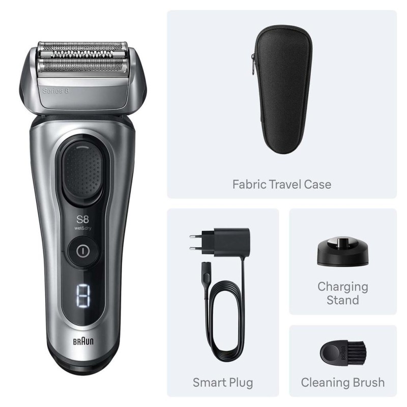 Braun Series 8 Elektrisk Rakapparat, SensoAdapt, Laddningsställ, 8617S, Silver