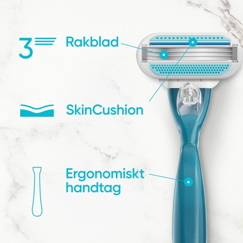 - Byt till nya rakblad för upp till 30 dagars släthet