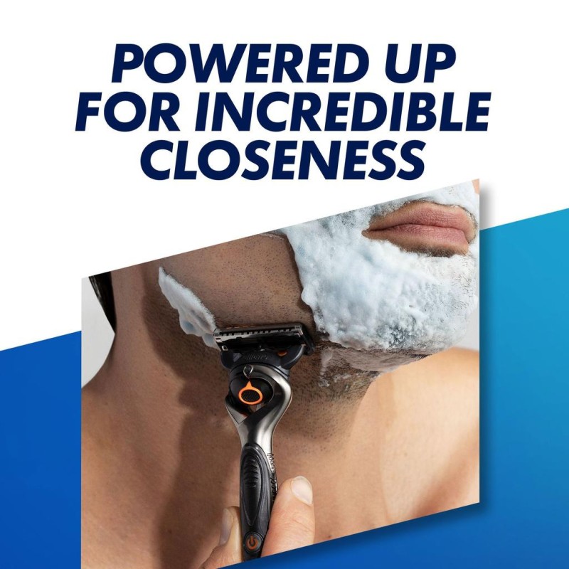 Gillette ProGlide Power rakhyvel för män ger den ikoniska Gillette-rakprecisionen med komfort och stil. Rakbladet har en större smörjande remsa* för komfort och glid. Precisionstrimmern på baksidan är perfekt för styling av ansiktshår, särskilt på svåråtkomliga ställen. Våra ultravassa, antifriktionsrakblad säkerställer en smidig rakning och passar alla Gillette 5-bladiga handtag (förutom GilletteLabs). ProGlide-refillerna kan hålla i upp till en månad.