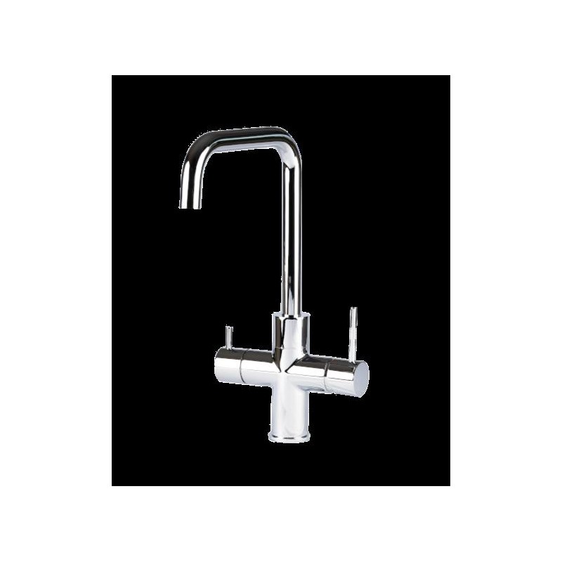 Klassisk U-armatur i krom. En mekanisk kran i snygg design som passar det moderna köket. Med enkel manövrering, snygg finish av hög kvalitet. Höger sida används för vanligt kallt och varmt vatten och vänster sida för kokande vatten. Produkten är barnsäker vilket innebär att handtaget på vänster sida måste tryckas in och sedan tryckas tillbaka för att få ut kokande vatten. När handtaget släpps slutar vattnet att komma ut.