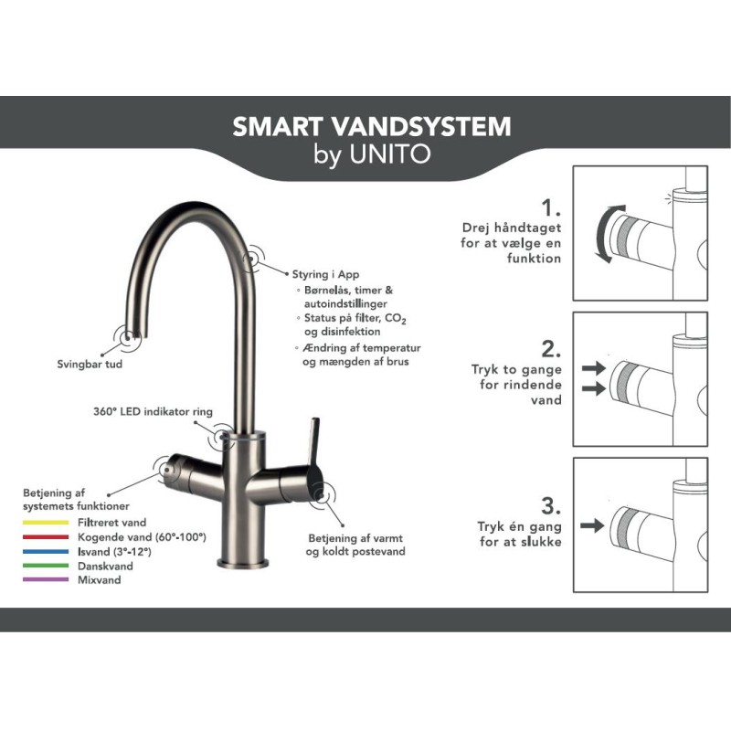 UNIVERSE-serien har ett nytt, modernt utseende för armaturer som är byggda i hög kvalitet. Produkten är designad för ergonomisk användning. Mycket lätt att använda oavsett om du är vänster- eller högerhänt. Vridbar kran i 180 grader och med LED-indikatorring i 360 grader ser du enkelt vilken funktion som är vald.