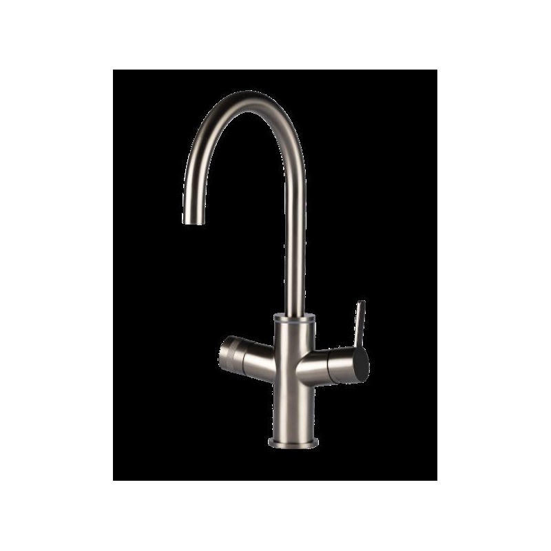 Vänster handtag används för att styra systemfunktionen. Välj antingen att hålla in den så rinner vattnet ut tills du släpper eller tryck två gånger så rinner vattnet ut utan att du trycker på handtaget igen