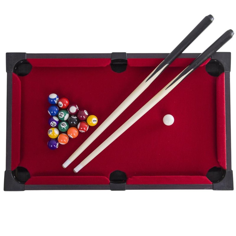 Bordsspel biljard, komplett med 1 st biljardbord, 2 st biljardköer, 16 st biljardbollar, 1 st borst, 1 triangel och kritor.